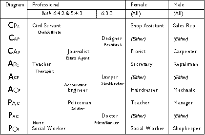 I have chosen groups of three rather than four, so even though Brando is really a PAC type, he would be listed as P-type in the simpler comparison, shown above.